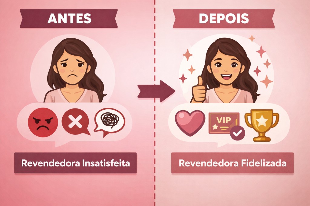 Sim. A empresa compartilha depoimentos reais de revendedoras satisfeitas em seu site, blog e redes sociais. Isso reforça a transparência da marca e permite que novos clientes vejam experiências verdadeiras de quem já comprou.
