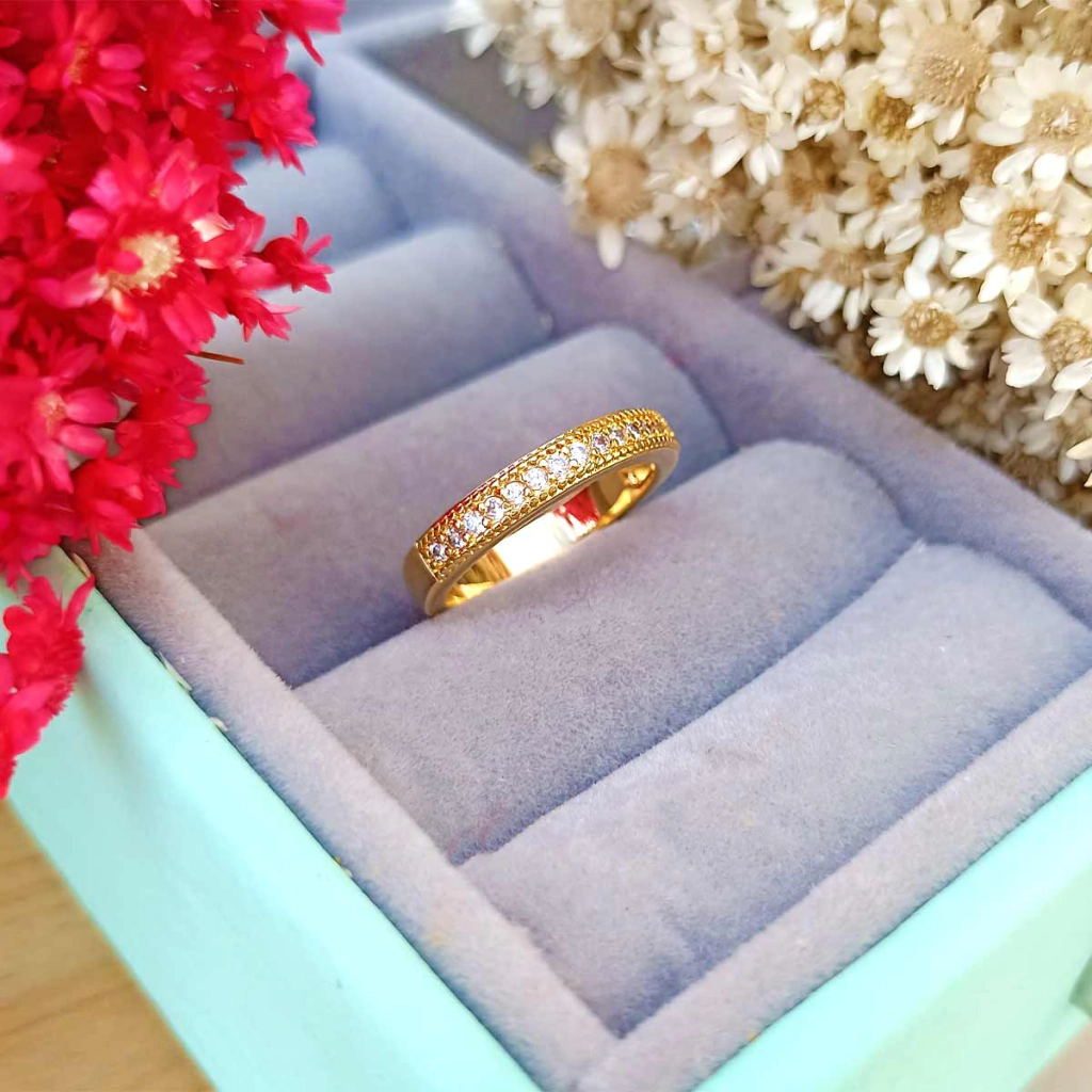 Você vai se encantar com a beleza deste lindo aparador. Suas bordas são pontilhadas e acompanhada de uma linda fileira de pequenas zircônias. Os aparadores são anéis que se usam no dedo anelar para acompanhar alianças como as de noivado, casamento e até mesmo de compromisso. Utilizado para dar um charme a mais na mão da mulher e ressaltar a beleza de outros anéis. Outro uso é para impedir que a aliança quando está um pouco solta não caia do dedo.