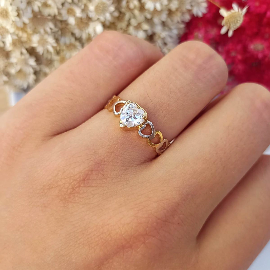 O coração possui vários significados sendo todos relacionados ao amor e o bem. No Ocidente o coração se refere aos sentimentos e no Oriente a intuição e a inteligência. O anel aro de corações tem seu aro todo trabalhado com este símbolo intercalados com aplique de ródio branco no banho de ouro amarelo. Em seu centro possui uma linda zircônia também em formato de coração deixando a peça ainda mais fofa. Garanta já o seu!