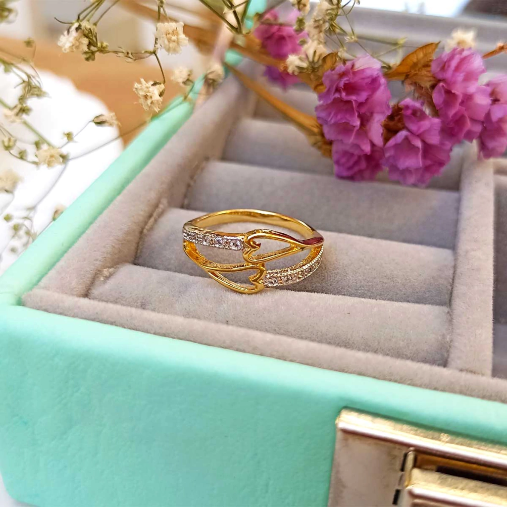Este lindo anel é ideal para você que curte o estilo romântico, uma joia muito delicada, com dois corações unidos e duas fileiras de zircônias cravejadas, dando ao acessório um design inédito e muito charmoso! Pode ser usado tranquilamente no dia a dia e também tem muito potencial para ser ofertada como presente para a namorada, esposa, mãe... Garanta já o seu!
