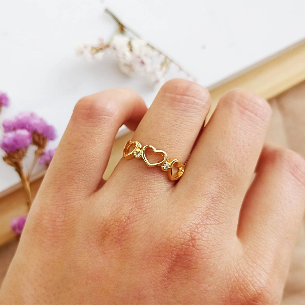 O coração é um símbolo universal do amor, este lindo anel com três corações unidos por zircônias brancas, folheado a ouro 18K, é ideal para o seu dia a dia, fique linda sempre com SoftJoias!