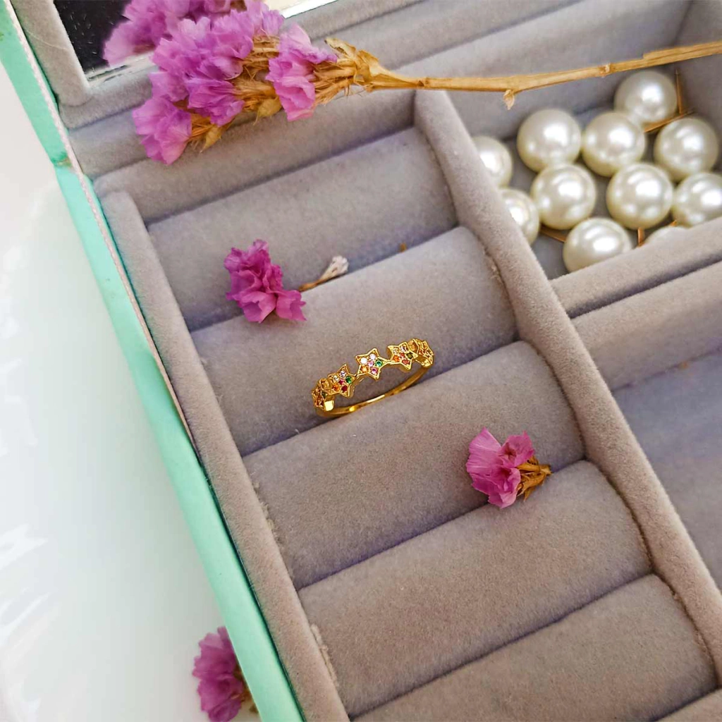 As estrelas eram utilizadas como um sinal de força e energia. Elas são muito delicadas e cheias de significados, principalmente as desse anel folheado em ouro 18K! São cinco no total com mini pedras de zircônias coloridas cravejadas dentro delas. Está esperando o que? Compre já a sua fique linda com a Softjoias!