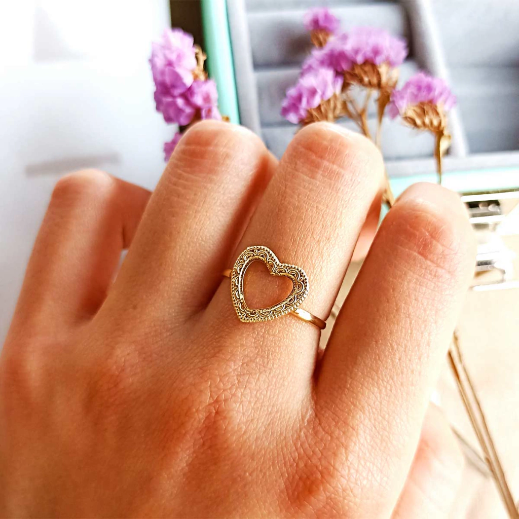 O coração é a representação de sentimentos como o amor, o carinho e o afeto. O anel todo folheado com coração detalhado, se destina à pessoas que adoram um visual romântico, podendo ser utilizado em ocasiões especiais e no dia a dia! Adquira já este lindo acessório e arrase com a SoftJoias!
