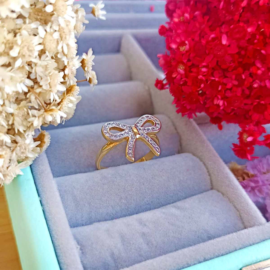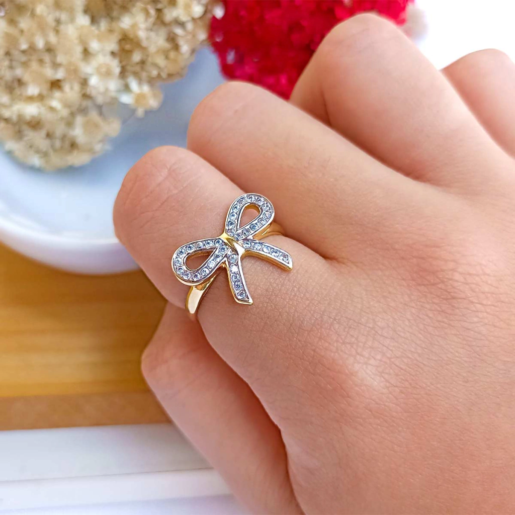 O laço é um clássico que vem acompanhando a moda a muitos anos. Hoje, os laços foram repaginados e existem vários tipos e modelos. Este anel tem seu laço um pouco diferente pois lembra muito um desenho de laço e toda sua extensão é cravejada com micro zircônias belíssimas trazendo sofisticação e glamour a peça. Um acessório perfeito para arrasar no visual e dar um up em seus looks. Garanta já o seu!!