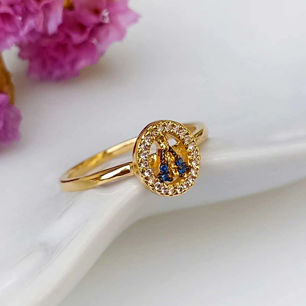Esse lindo anel de Nossa Senhora é composto por uma mandala repleta de zircônias em volta da imagem de Nossa Senhora, com seu manto azul, onde estão presentes algumas zircônias da mesma cor. Um anel discreto e perfeito para demonstrar a sua fé com muita elegância. Combine com outro brinco ou colar de Nossa Senhora para complementar o seu look!