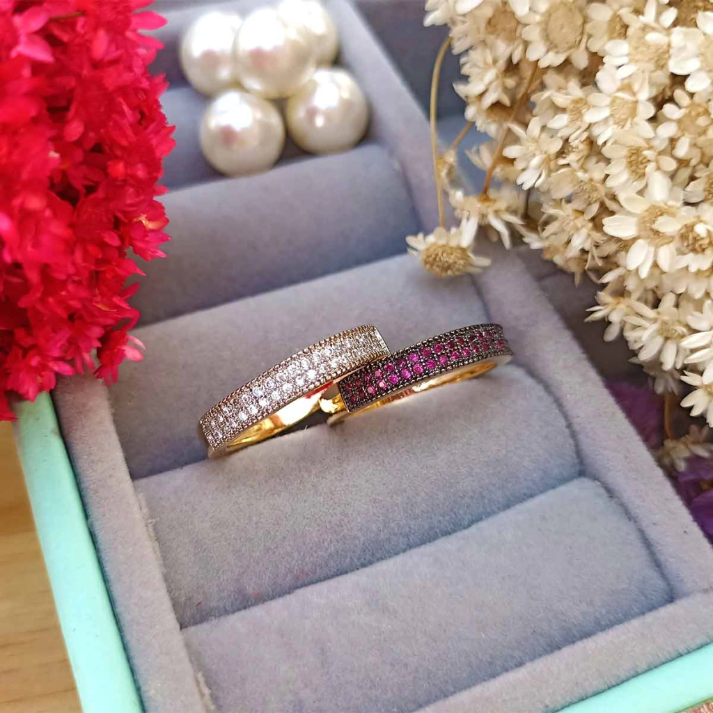 O anel meia aliança assim como os aparadores vem crescendo cada vez mais no mundo da moda. Antigamente esses tipos de anéis tinham todo um significado, mas hoje são usados também como um acessório por toda sua beleza e funcionalidade. O anel meia aliança com duas fileiras de zircônias está simplesmente irresistível. Ele tem um aro mais grosso com pequenas zircônias enfileiradas em duas. Um acessório perfeito para complementar seus looks e ideal para fazer lindas combinações. Adquira já o seu!