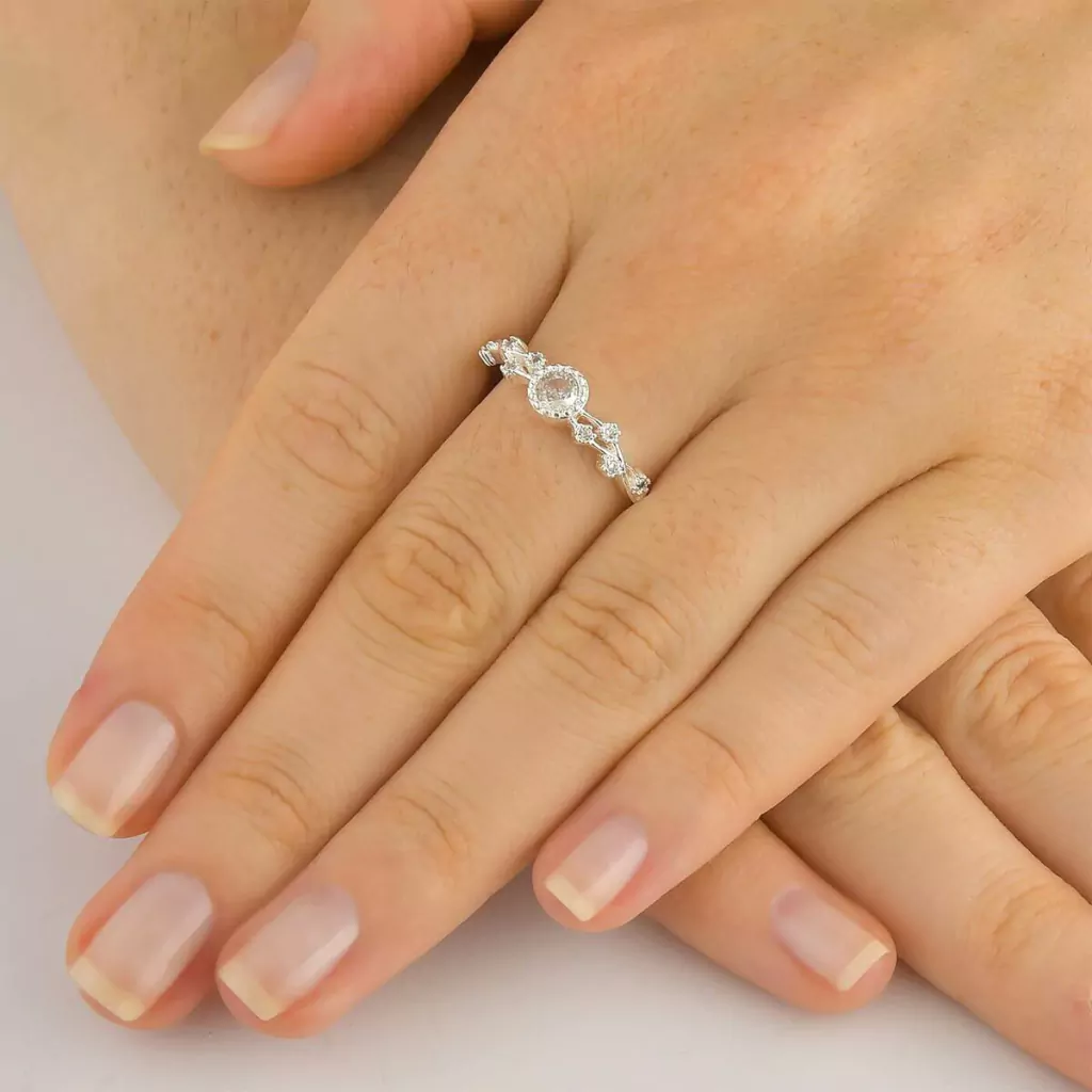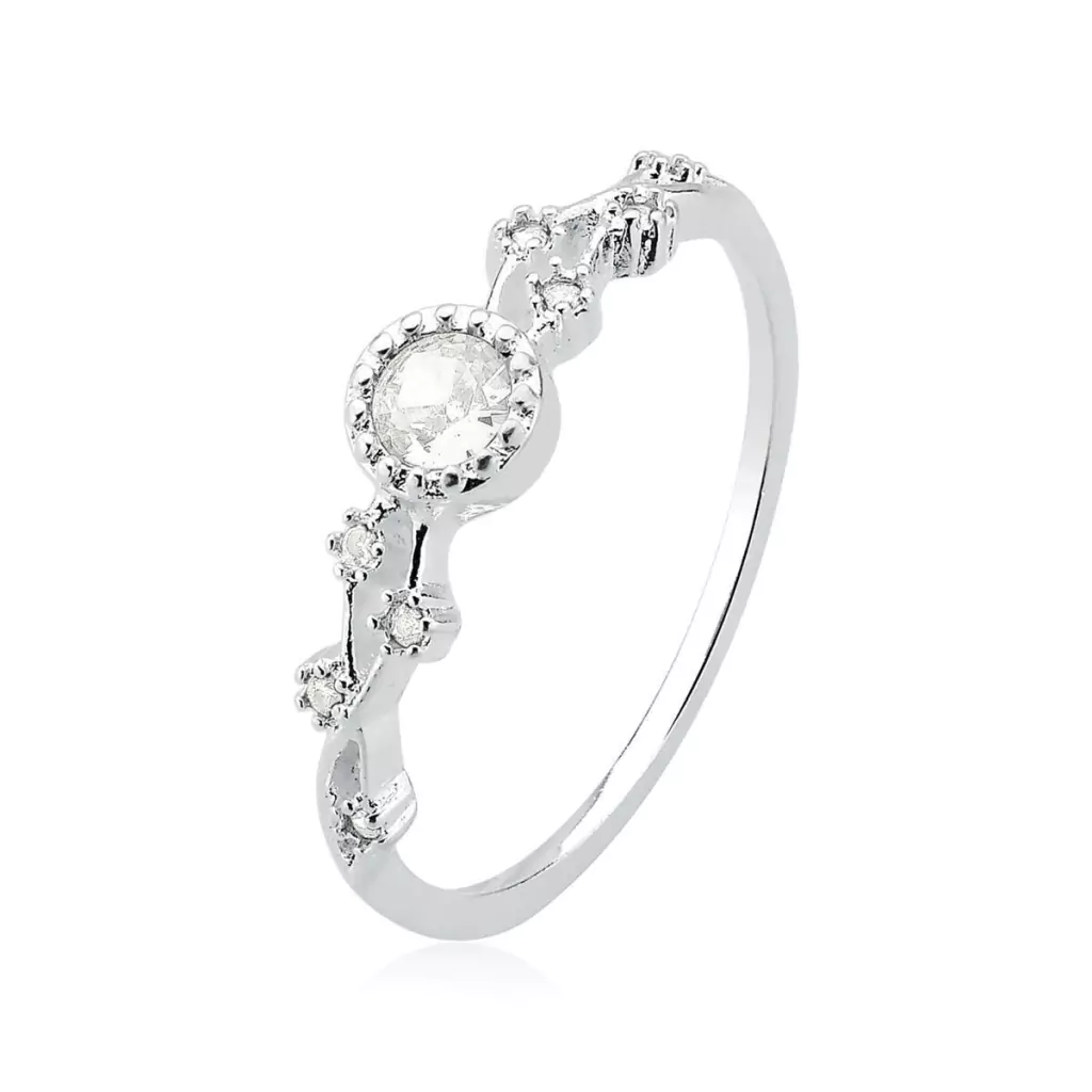 Anel Solitario Ramos Zircônias Prata 925, Um modelo delicado mas não menos bonito, Com uma zirconia central areddondada e várias outras em seu aro, dando uma charme a mais nesse lindo modelo.