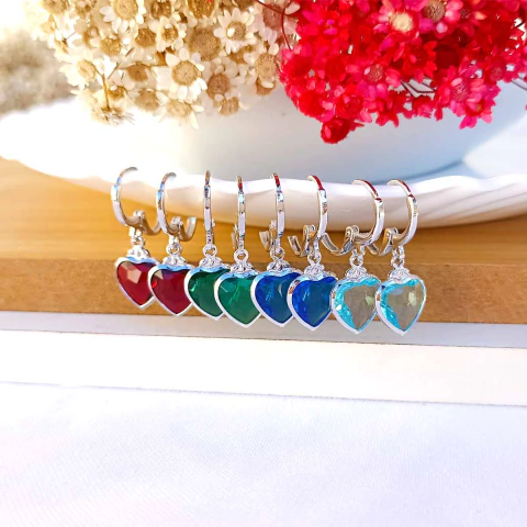 O item queridinho pelas apaixonadas em peças de ródio chegou! O brinco de argola fechada folheado em ródio branco tem um brilho maravilhoso realçado por um pingente de cristal em formato de coração que é o destaque da composição. Tendo quatro opções de cores super marcantes: azul, azul claro, verde e vermelho.
