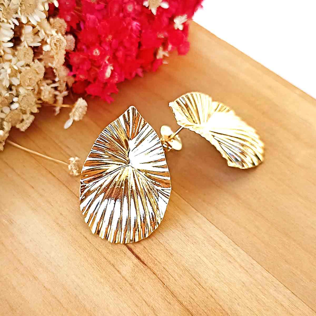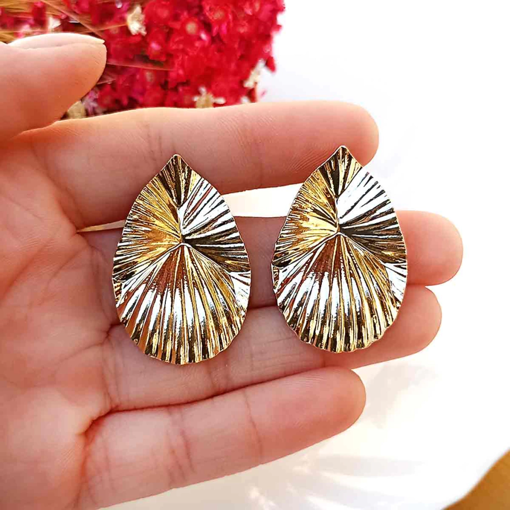 Mais um brinco da Softjoias, super tendência para você que ama andar na moda! Pode usar no dia a dia ou em lugares mais badalados. Uma semijoia que é toda folheada em ouro, uma peça chave para você compor seus looks pois trata-se de um item bem versátil. Possui uma chapa de metal em formato de Flolha que está em alta ultimamente!