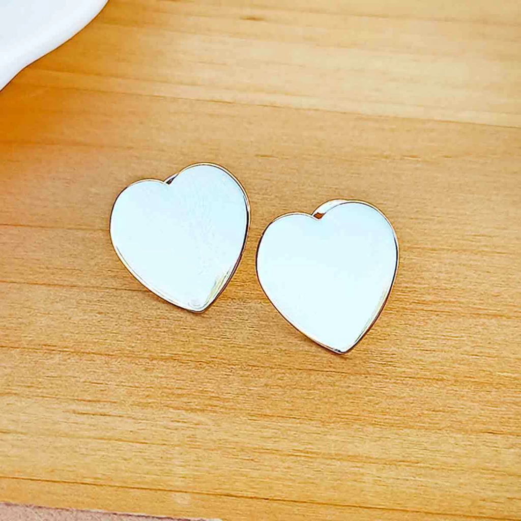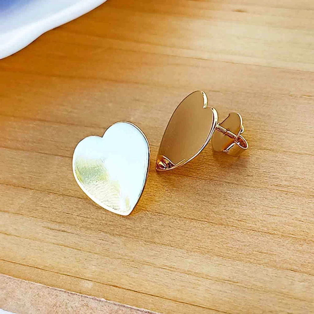 Brinco Médio Coração Liso Chapa de Metal Leve Folheado em Ouro 18K