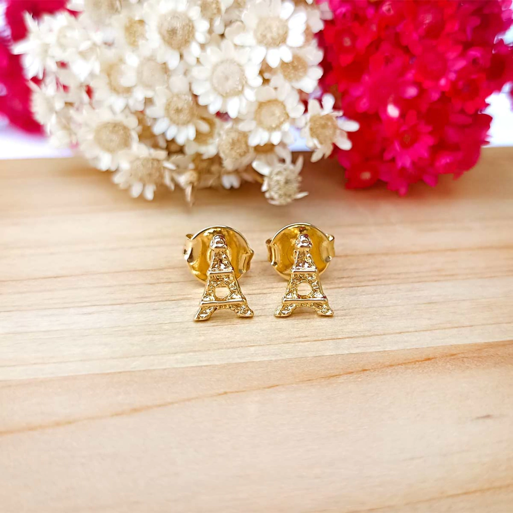 O brinco pequeno com formato de torre eiffel é tudo oque você precisa para ficar linda e modesta! Ele é todo folheado em ouro então apresenta muito brilho e elegância com o maior símbolo da França, de trezentos e vinte quatro metros de altura que ilumina toda a Paris.