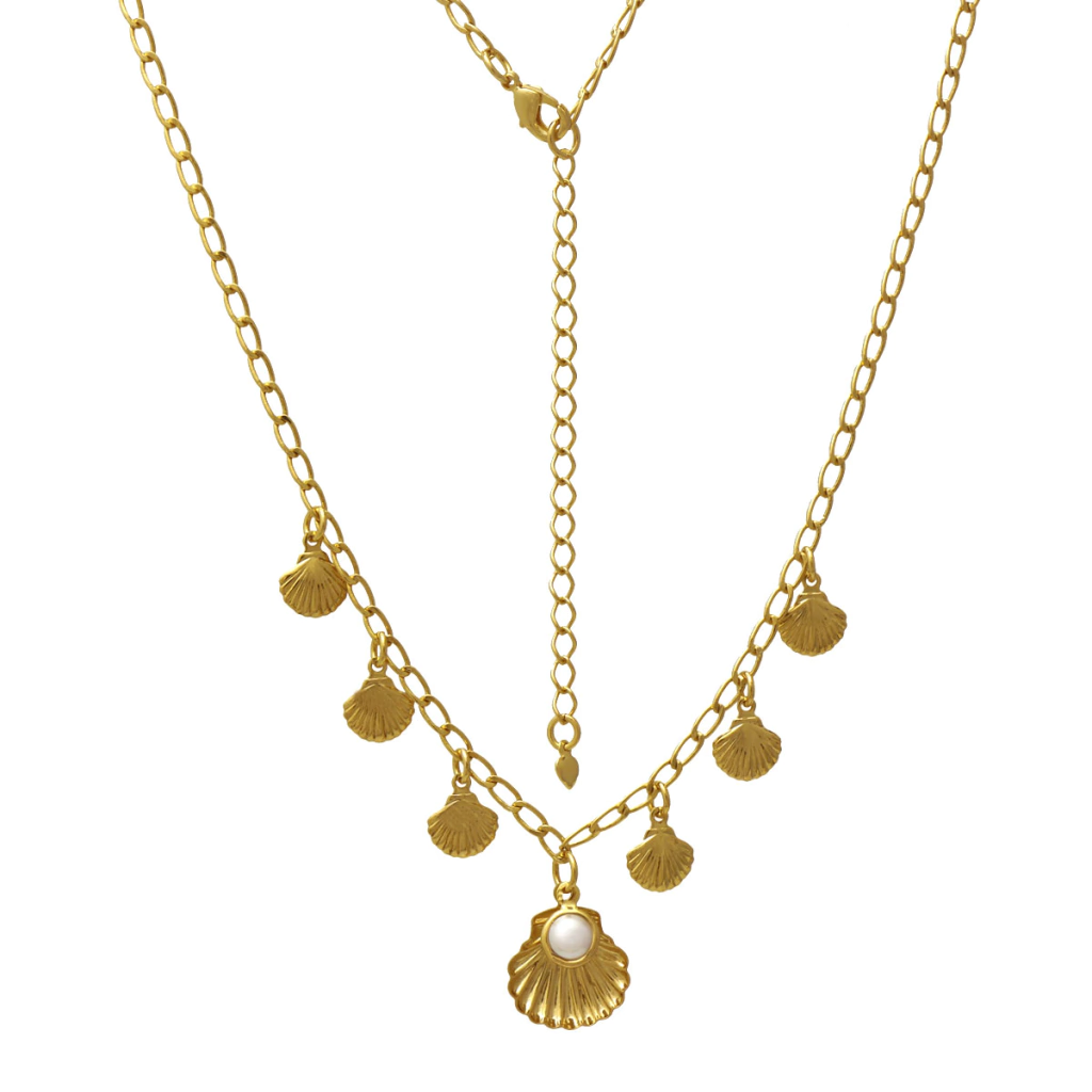 O colar com conchas e pérola é um acessório super delicado e feminino! Possuindo dois banhos agradando tanto quem prefere em ródio branco quanto quem opta pela cor dourada do ouro. Tem o total de sete pingentes de conchas sendo a maior acompanhada de uma pérola que realça todo o modelo.