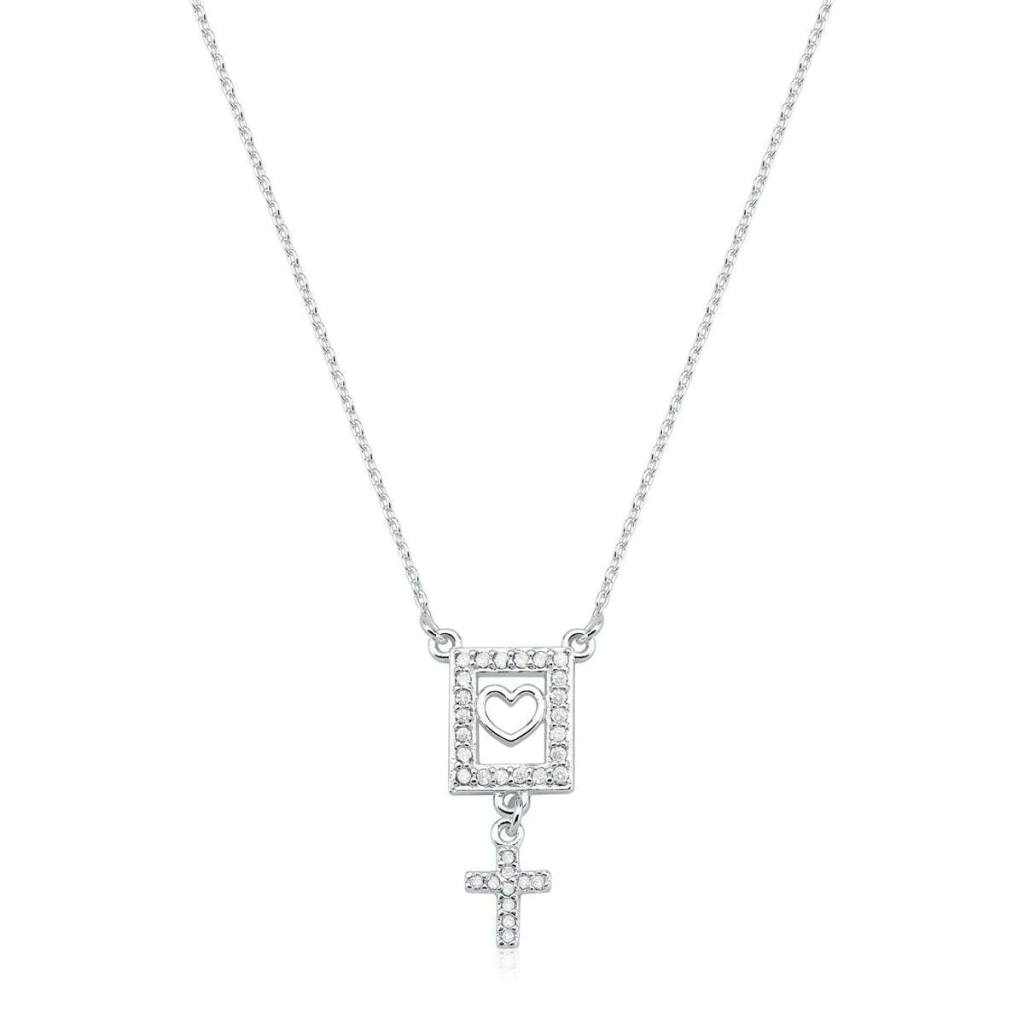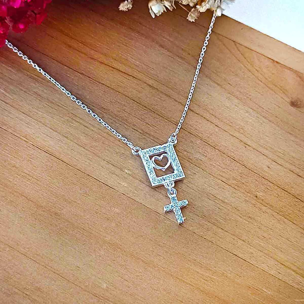Colar Coração e Cruz Cravejada 925. Esse escapulário é perfeito para quem valoriza elegância e aprecia acessórios com significado. Com design delicado e cheio de detalhes, ele traz um toque especial ao seu visual, seja no dia a dia ou em momentos especiais.