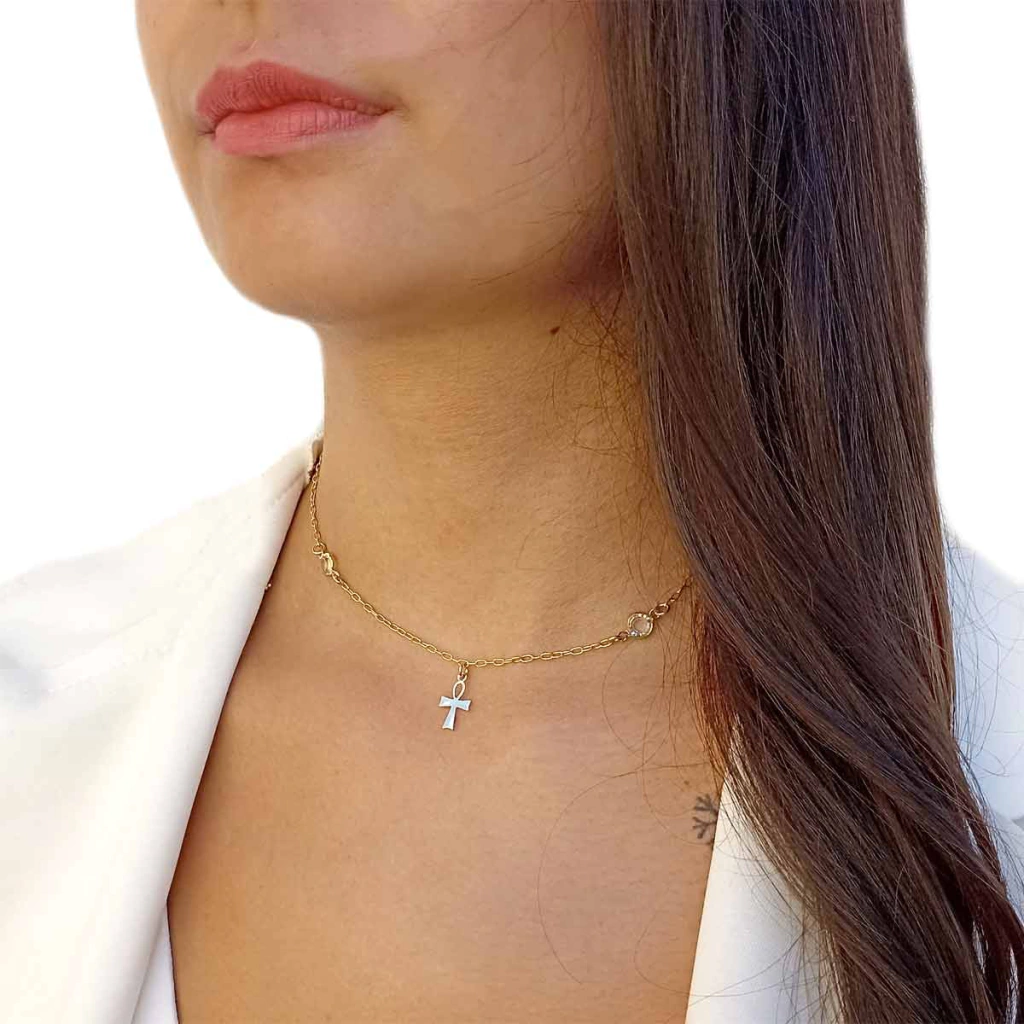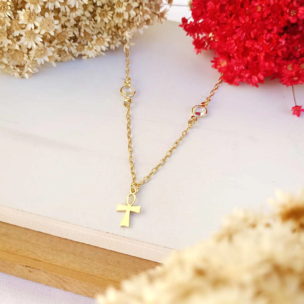 Esse colar tem uma beleza incomparável! Ele é romântico e diferenciado com uma delicadeza intensa e apaixonante. Sua correntes de elos, seu pingente de cruz e duas pedrinhas de zircônias dão um charme incrível combinados em qualquer look! Uma semijoia encantadora pra você que quer um acessório discreto e com muita personalidade, demonstrando fé e romantismo. A SoftJoias possui uma grande variedade de peças, assim como essa, apaixonantes, aposte nas combinações!!