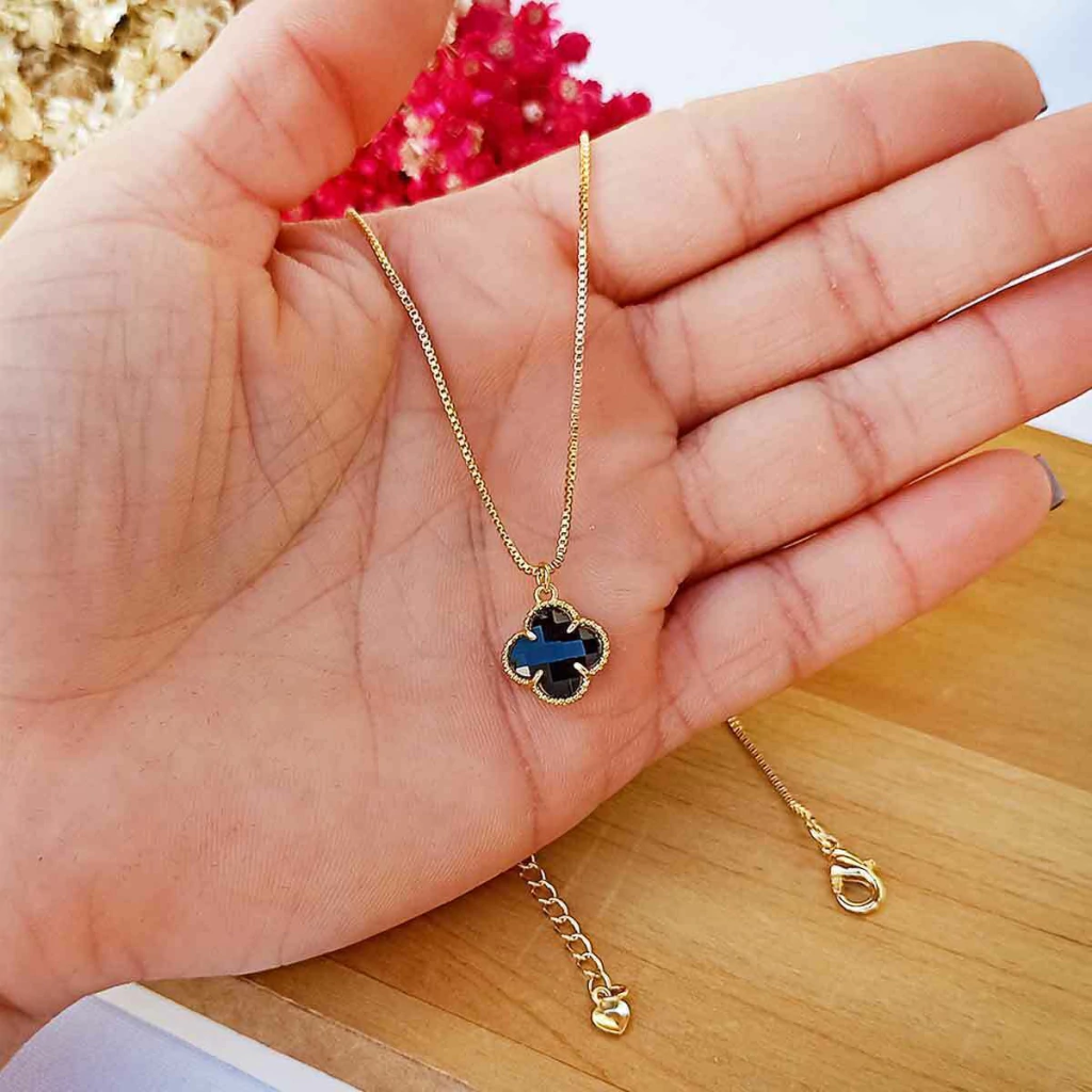 Colar De Trevo Zircônia Preta Virginia Folheado em Ouro 18K