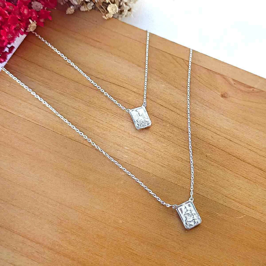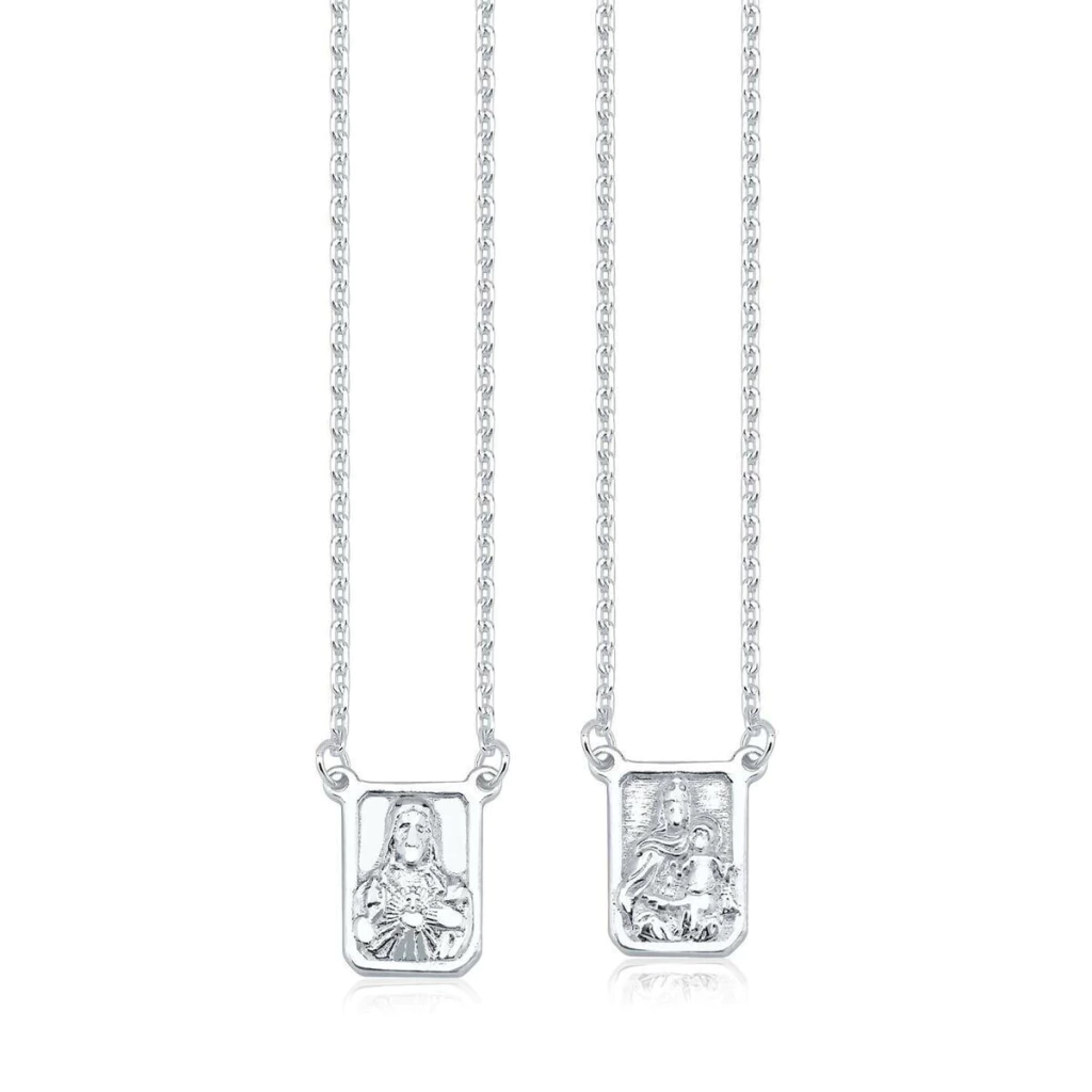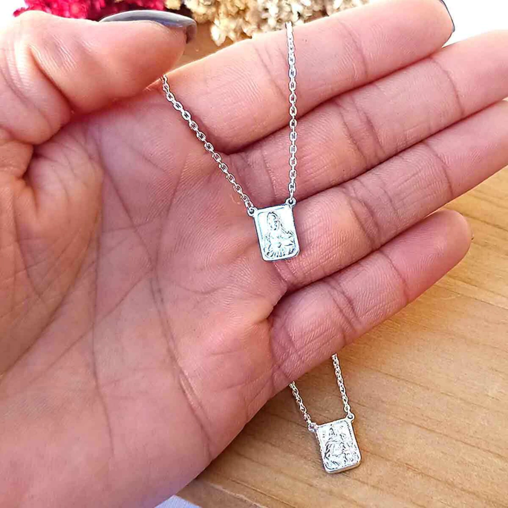 Colar Escapulário Jesus e Maria Prata 925. Esse escapulário é perfeito para quem valoriza elegância e aprecia acessórios com significado. Com design delicado e cheio de detalhes, ele traz um toque especial ao seu visual, seja no dia a dia ou em momentos especiais.