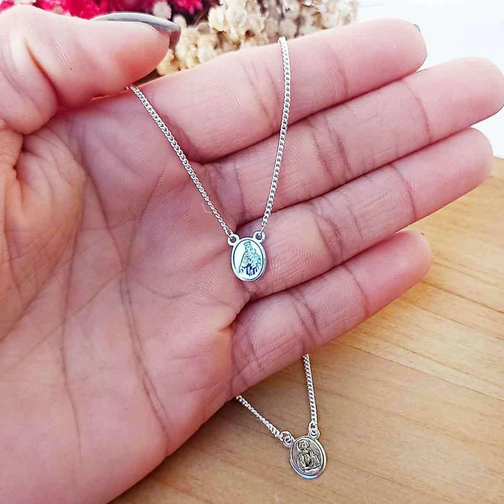 Colar Escapulário Oval Jesus e Maria Prata 925. Esse escapulário é perfeito para quem valoriza elegância e aprecia acessórios com significado. Com design delicado e cheio de detalhes feitos a laser, ele traz um toque especial ao seu visual, seja no dia a dia ou em momentos especiais.