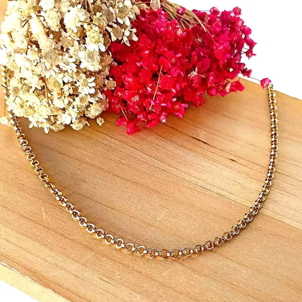 Colar Feminino Elo Português Aço Inox Dourado