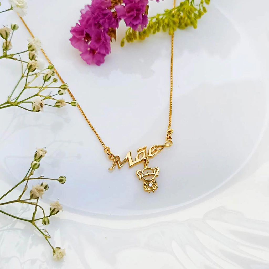 Este lindo colar tem a escrita mãe, um símbolo do infinito e um pingente de menina, este acessório é repleto de significado, um ótimo presente para uma mamãe! garanta já o seu!