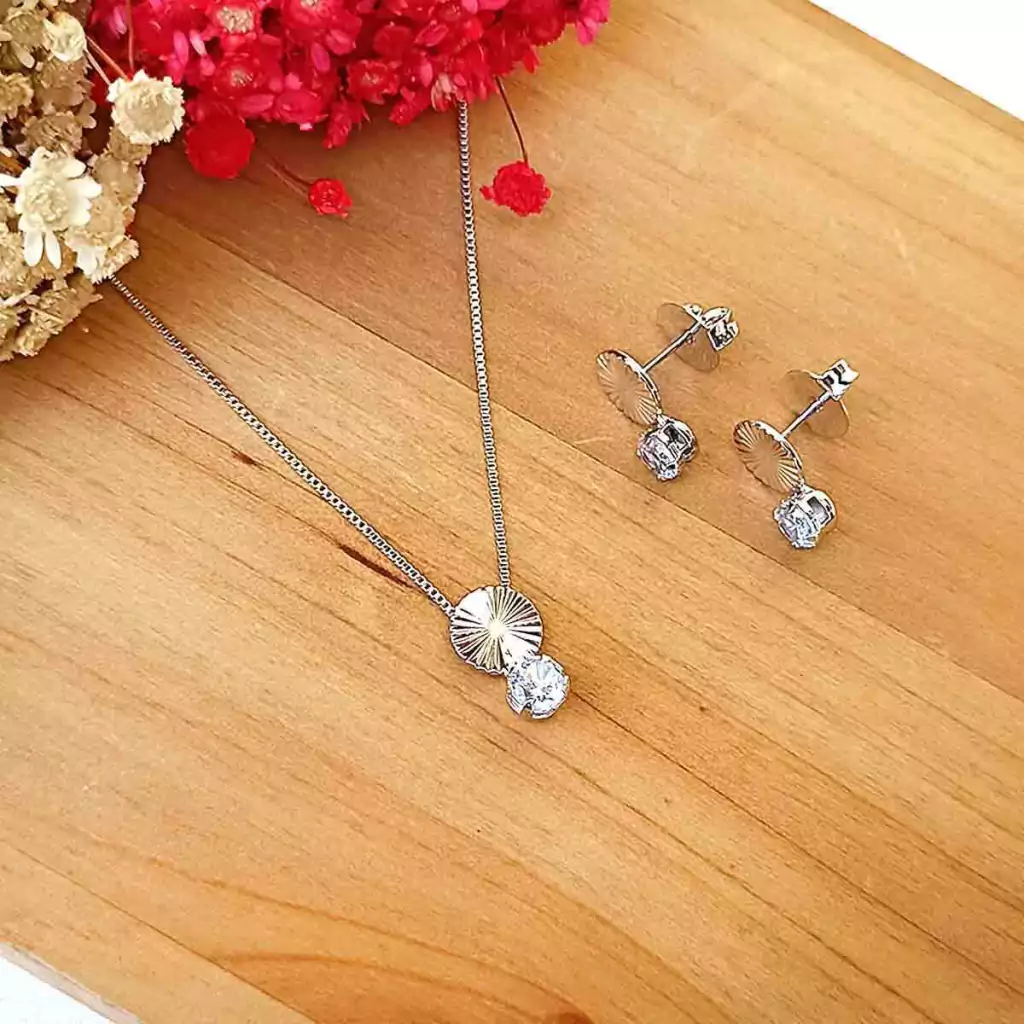 Conjunto Colar e Brincos Redondo Zircônias Banhado Ródio Branco, esse Conjunto Lindo usa corrente de veneziana com extensor, vem com um colar e uma par de brincos com peças redondas acompanhada de pedra zircônia, seu fecho lagosta fica muito mais prático para tirar e colocar.