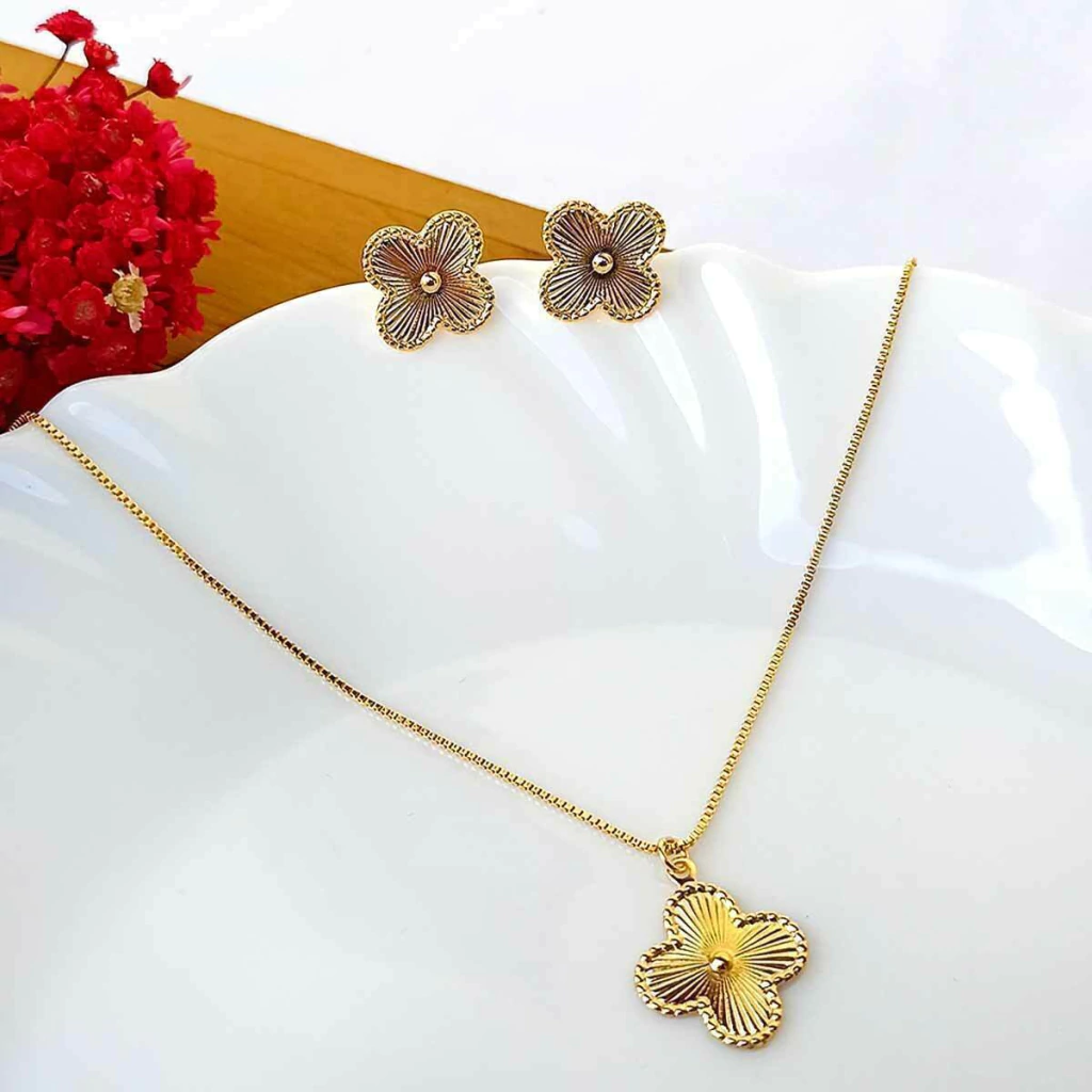 Conjunto de Colar e Brincos De Trevo Detalhado Virginia, folheado em ouro 18K.