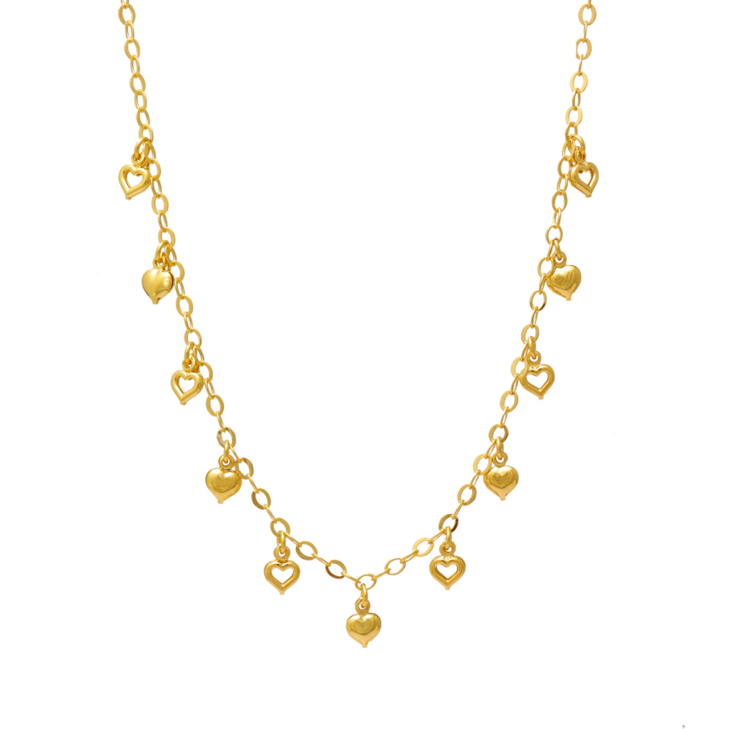 Colares de coração, além de representar o amor, também representam o bom gosto. É um item que está há muito tempo na moda e não vai sair tão cedo das estampas do mundo fashion. Este colar é uma ótima opção para quem gosta de semijoias luxuosas e que transmitam muita beleza e feminilidade. O acessório possui corações vazados e cheios que dão muito romantismo para a peça! Garanta já o seu!