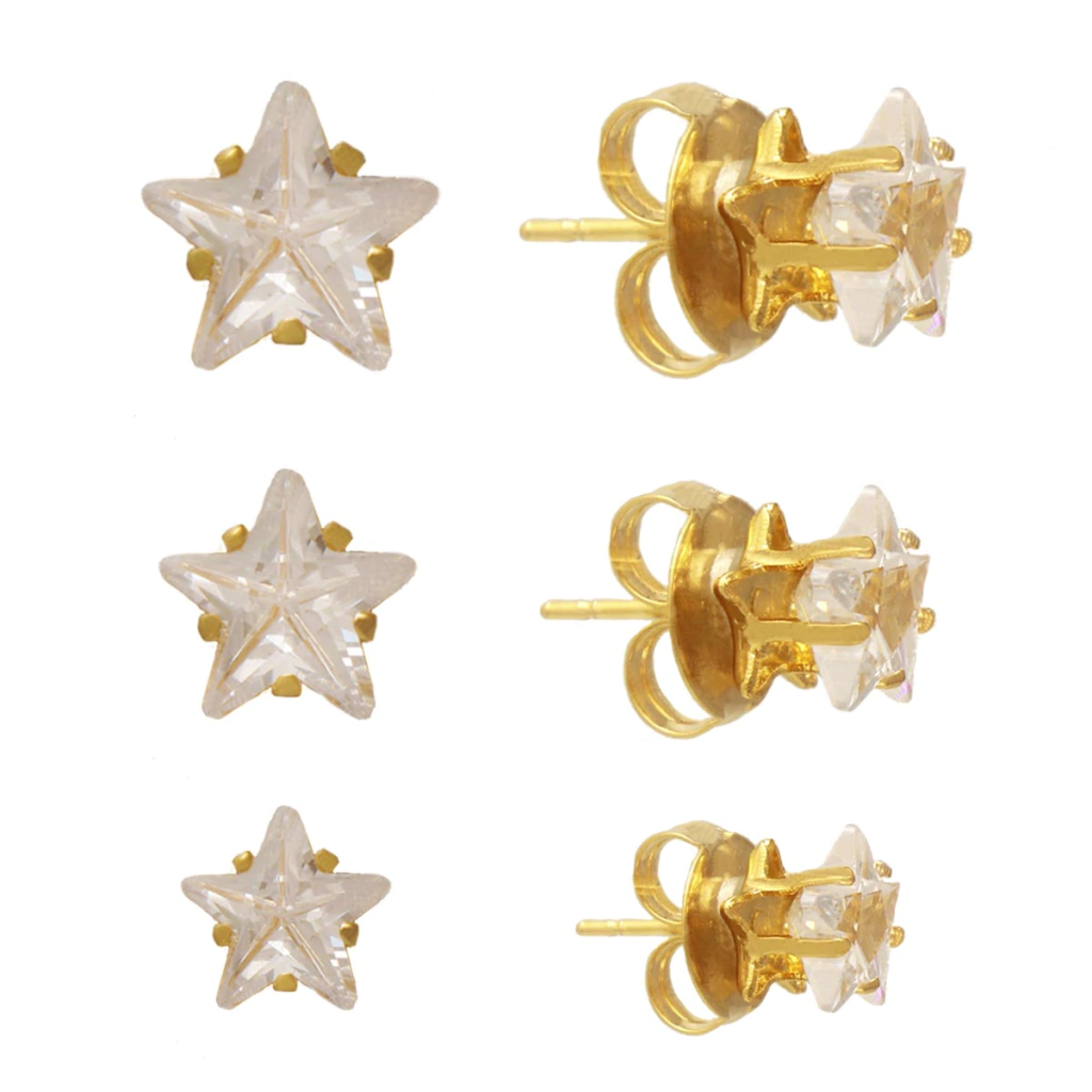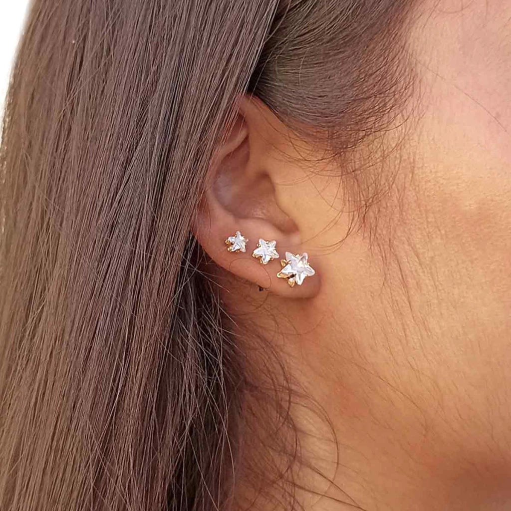 Um lindo kit de brincos de estrelas, todo folheado a ouro com zircônias é perfeito para qualquer ocasião! Ideal para você que adora um mix de triozinho que combina com tudo! Pode ser usado no dia a dia e em eventos informais!