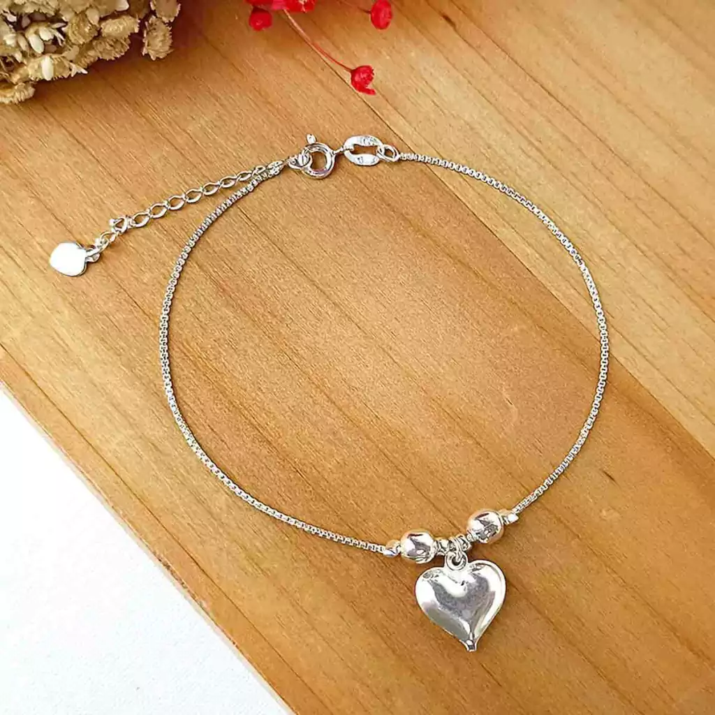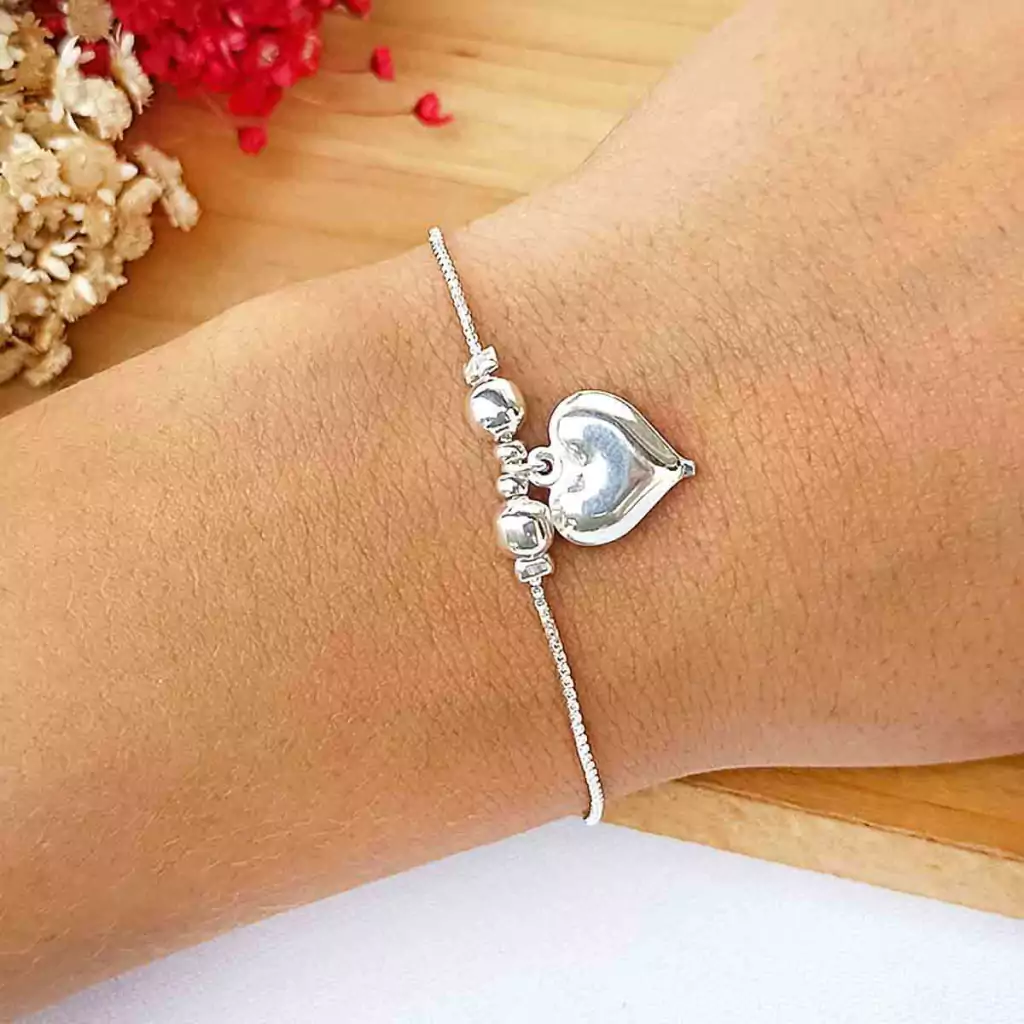 Pulseira Com Bolinhas Coração Prata 925 vem com 19 cm + 5 cm extensor, tem o fecho estilo boia o qual apresenta facilidade no uso, é constituida por corrente veneziana e pingente de coração, e seu material é de excelente qualidade e durabilidade.