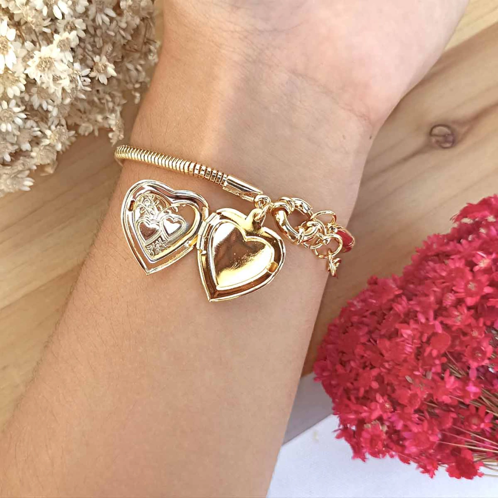 Um Relicário é um lugar destinado para guardar ou proteger coisas preciosas e/ ou relíquias. Seu design transmite um sentimento de afeto e amor, graças ao seu formato de coração. Você pode colocar uma mini-foto dentro dela e carregar alguém que ama sempre consigo. Essa pulseira com um significado tão poético não poderia faltar em seu porta-joias! Não perca esta oportunidade, garanta já a sua!