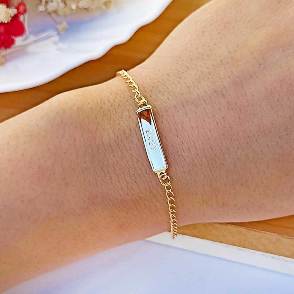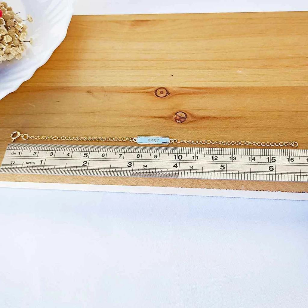 Pulseira Infantil Chapa Escrita Baby Folheado em Ouro 18K, uma peça delicada e charmosa feita especialmente para os pequenos! Esta pulseira é para seu baby: bebê!