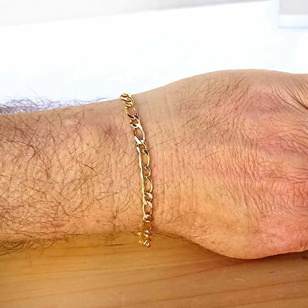 Pulseira Masculina Elos Fígaro Folheado em Ouro 18K é a escolha perfeita para quem busca estilo e sofisticação. Com acabamento impecável em ouro 18K, esta pulseira une resistência e elegância em um design moderno. Ideal para compor looks casuais e formais, ela garante um toque único e refinado ao seu visual.